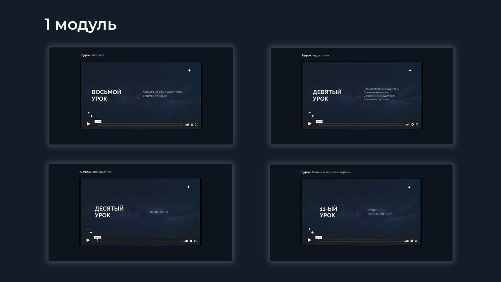 1. Вводный урок 2. Основы маркетинга 3. Основы SMM 4. Анализ целевой аудитории. Конкурентный анализ 5. Инстаграм по кусочкам 6. Как таргетологу вести свой аккаунт